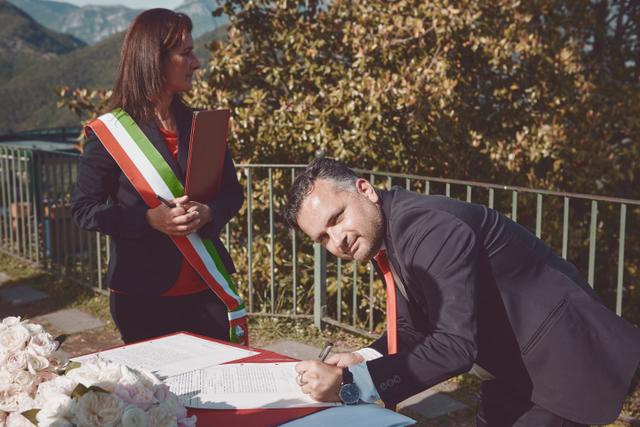 Dom e Jess hanno celebrato il loro matrimonio civile nei bellissimi giardini del municipio di Ravello.